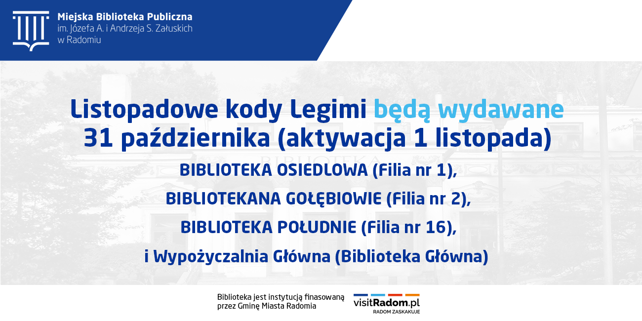 WWW.MBPRADOM.PL – kopia (1364 x 240 mm) (240 x 136.4 mm)RKKnarodowy program grafikawrzesień.pdf (7)DSC_8741LEGIMI2 Wydarzenia Aktualności Radomska Karta Kulturalna Radomski Klub Czytelniczy Radomskie ławeczki literackie CZYTAKI DLA OSÓB NIEWIDOMYCH I SŁABOWIDZĄCYCH CZYTAKI DLA OSÓB NIEWIDOMYCH I SŁABOWIDZĄCYCH CZYTAKI DLA OSÓB NIEWIDOMYCH I SŁABOWIDZĄCYCH ZASUGERUJ KUPNO KSIĄŻKI ZAPISZ SIĘ DO NEWSLETTERA Email Przechodząc dalej, akceptujesz politykę prywatności Klauzula informacyjna o przetwarzaniu danych osobowych Zgodnie z art. 13 i 14 Rozporządzenia Parlamentu Europejskiego i Rady (UE) 2016/679 z dnia 27 kwietnia 2016 r. w sprawie ochrony osób fizycznych w związku z przetwarzaniem danych osobowych i w sprawie swobodnego przepływu takich danych oraz uchylenia dyrektywy 95/46/WE (ogólne rozporządzenie o ochronie danych), informuję, że:Miejska Biblioteka Publiczna im. Józefa A. i Andrzeja S. Załuskich w Radomiu, z siedzibą przy ul. J. Piłsudskiego 12, W sprawach związanych z ochroną danych osobowych wyjaśnień udziela Inspektor Ochrony Danych, pod adresem e-mail: iod@mbpradom.pl. Biblioteka działając na podstawie Art. 6 ust.1 lit. a) RODO, zbiera adresy e-mail, w celu przesyłania informacji promocyjnych, po uprzednim wyrażeniu zgody na ich otrzymywanie. Każdy użytkownik Newslettera ma prawo dostępu do treści swoich danych, do ich sprostowania, ograniczenia usunięcia danych, przenoszenia danych oraz wniesienia sprzeciwu wobec ich przetwarzania. Podanie danych jest dobrowolne, jednakże niezbędne do korzystania z kanału Newsletter. Dane osobowe użytkowników Newsletter będą przechowywane jedynie w okresie niezbędnym do spełnienia celu, dla którego zostały zebrane. Okres przechowywania danych osobowych w postaci adresów e-mail wynosi 90 dni od momentu rezygnacji z subskrypcji Newslettera. W przypadku wyrażenia zgody na wykorzystanie przez Bibliotekę adresu e-mail, użytkownik Newslettera ma prawo do jej wycofania w dowolnym momencie, bez wpływu na zgodność z prawem przetwarzania, którego dokonano na podstawie zgody przed jej cofnięciem. Biblioteka udostępnia dane osobowe podmiotom upoważnionym na podstawie przepisów prawa. Dane osobowe użytkowników Newslettera nie będą przetwarzane w sposób zautomatyzowany i nie będą profilowane. Każdy użytkownik Newslettera ma prawo do wniesienia skargi do Prezesa Urzędu Ochrony Danych Osobowych, z siedzibą w Warszawie przy ul. Moniuszki 1A. Zgoda na przetwarzanie danych osobowych Rejestrując się w Newsletter wyrażam zgodę na przetwarzanie moich danych osobowych w postaci adresu e-mail przez Miejską Bibliotekę Publiczną im. Józefa A. i Andrzeja S. Załuskich w Radomiu, z siedzibą przy ul. Józefa Piłsudskiego 12, 26-600 Radom.